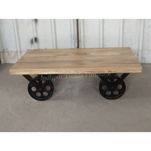 รถเข็นเหล็กหล่อสไตล์บาร็อคสไตล์คนเมืองที่ทันสมัยสีดำสนิมโต๊ะกาแฟทำจากไม้มะม่วงแข็งสำหรับเฟอร์นิเจอร์ห้องนั่งเล่น